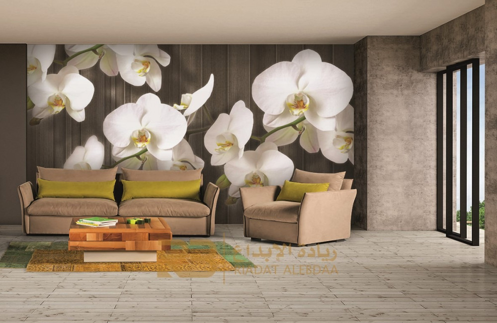 ورق جدران تصميم زهور بيضاء (رقم المنتج RB-E48)