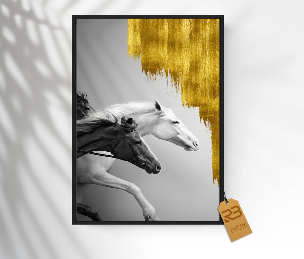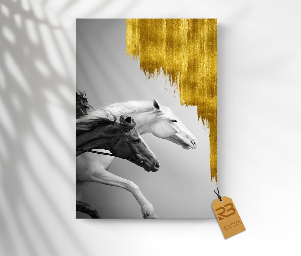 Horses Design Wall Art with Golden Stripes (Article No. RB-1)