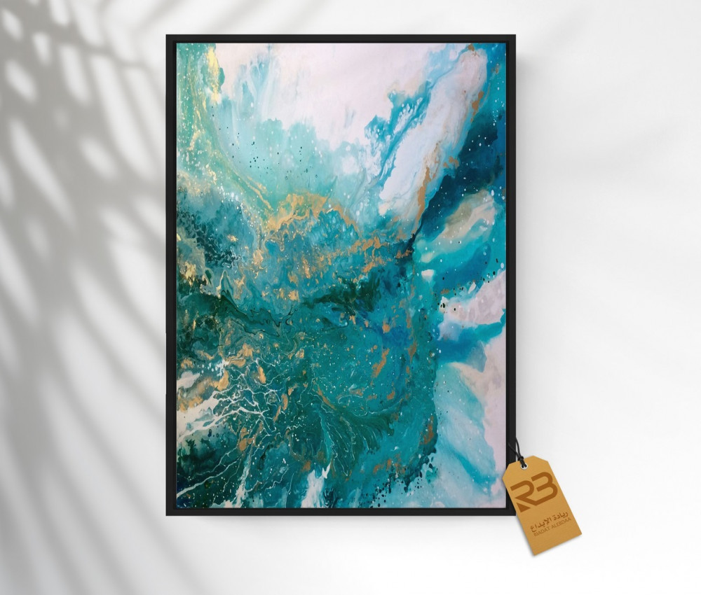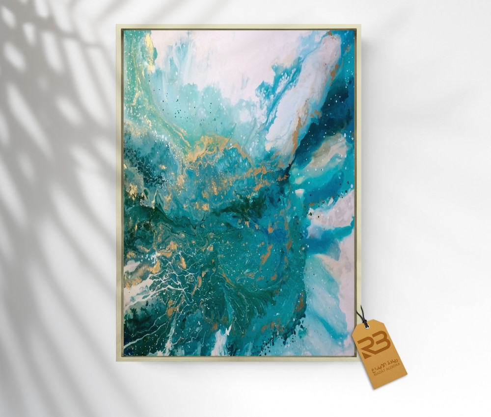 Wall Painting Art Design Turquoise mixed with golden veins (Article No. RB-4)